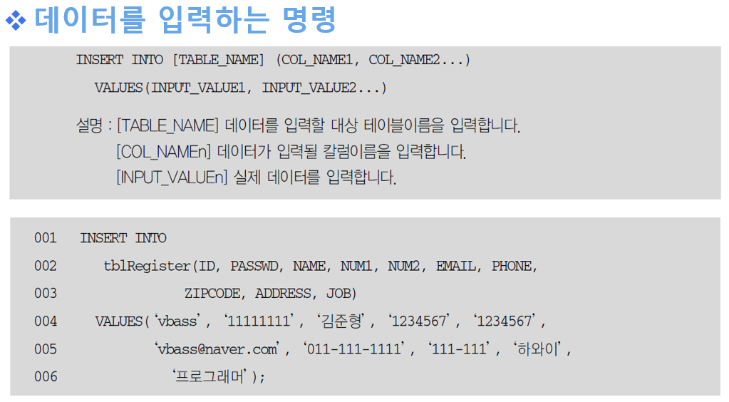 나. 데이터 조작 언어 (DML: Data Manipulation Language)